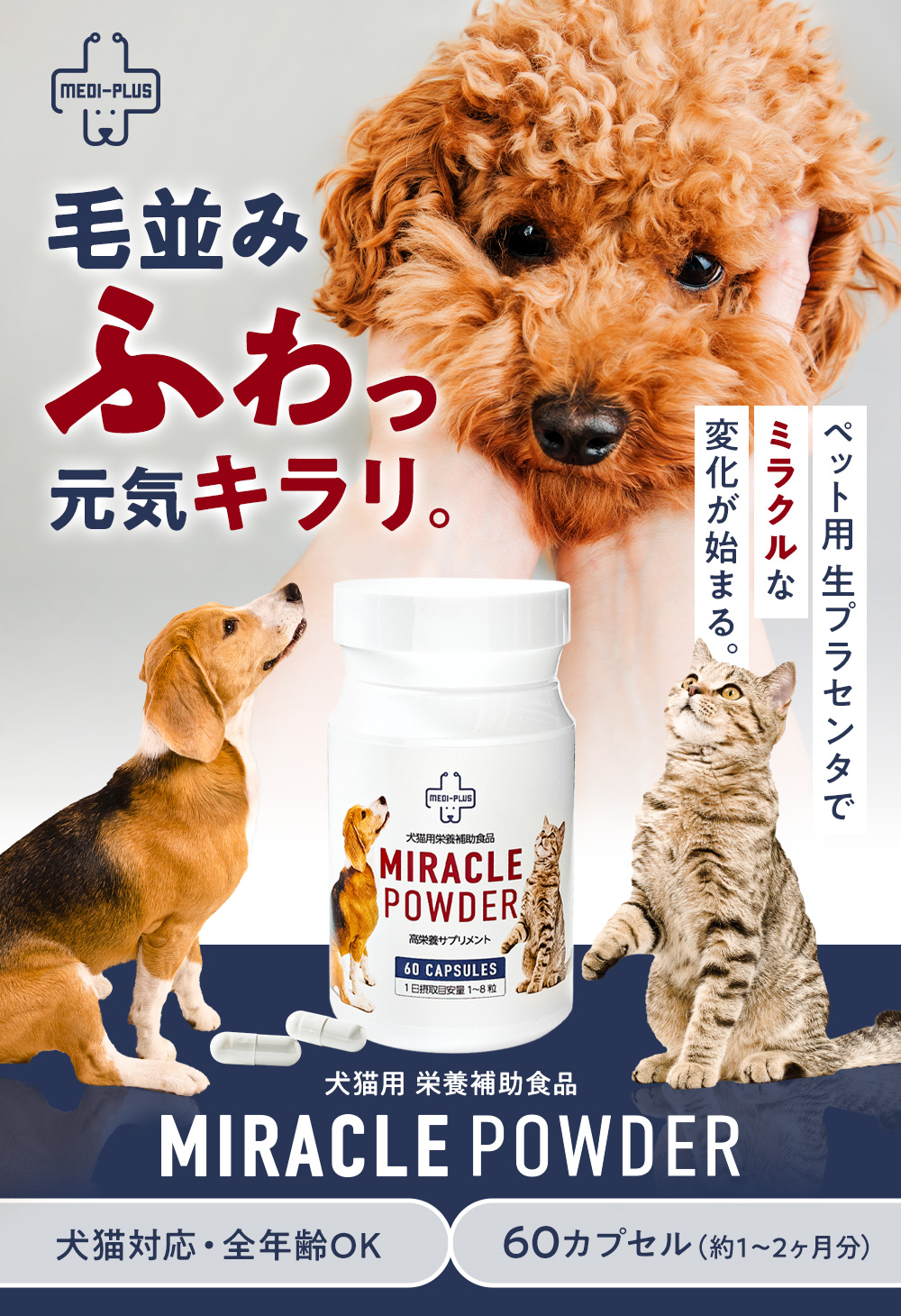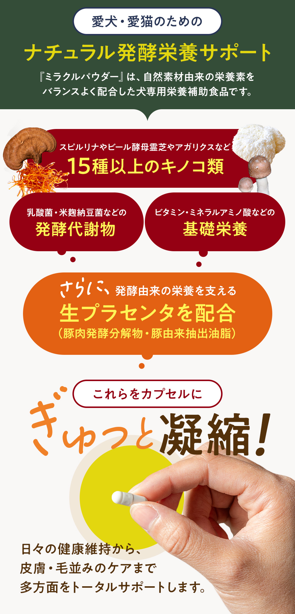 直この商品は犬猫用栄養補助食品です。